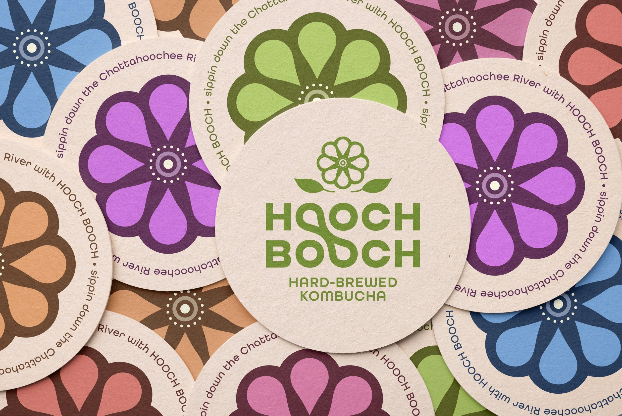 The floral logo pays tribute to Georgia’s state flower, the Cherokee Rose, while the flowing ligature in the typographic logo mirrors the endless, meandering rhythm of the Chattahoochee River—an ode to the brand’s roots and the carefree lifestyle it celebrates.